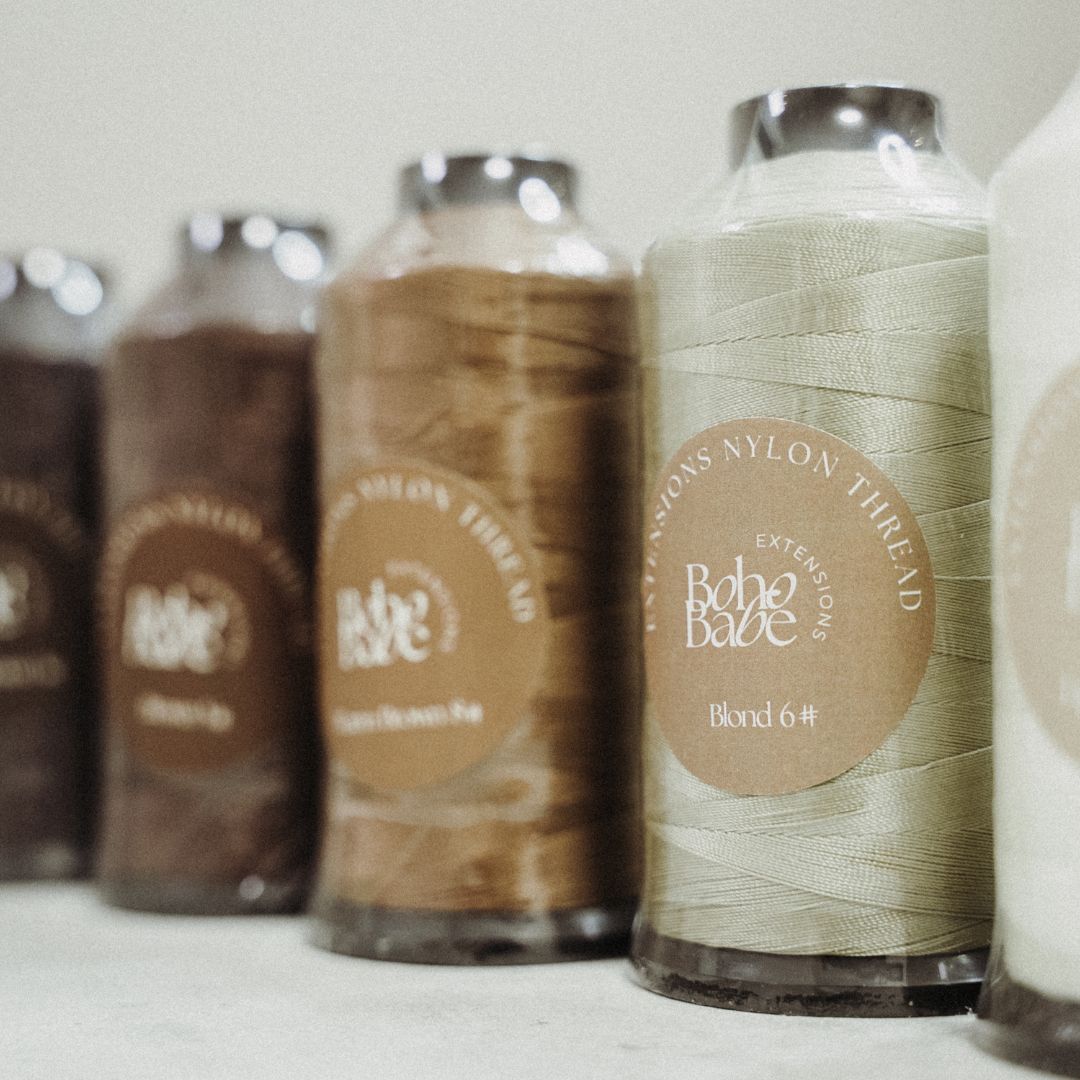 Entdecke unser speziell entwickeltes Nähgarn aus 100% Nylon für Boho Babe Hair Extensions – ein unverzichtbares Zubehör für die perfekte Anbringung Deiner Boho Babe Wefts. Wir bieten Dir eine Palette an Farben, um jede Haarverlängerung nahtlos und elegant zu gestalten.